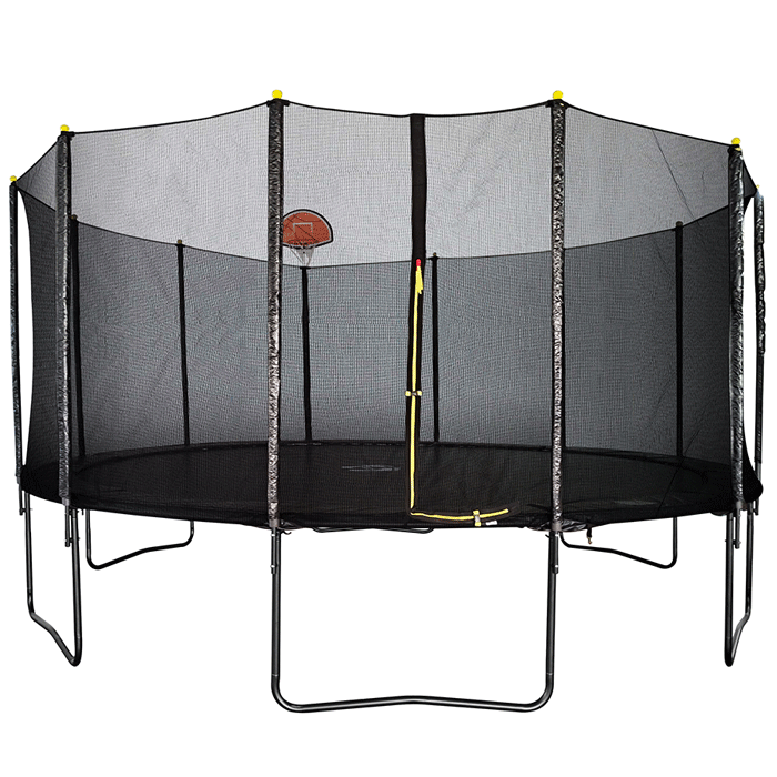 Add a bit of excitement to your trampolining experience with a basketball hoop. Only compatible with enclosures where you can expose the enclosure pole and clamp 32mm diameter ring clamps. The Big Air basketball hoop has been designed for use with a wide range of trampolines, but so that the hoop still sits above and inside the enclosure. This makes it a safe solid and enjoyable product. The trampoline & enclosure pictured are for illustration purposes only and are not included.