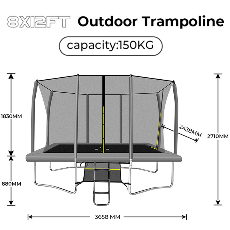 Big Air Extreme 8x12ft Rectangular Trampoline with Safety Enclosure Grey – Free Ladder & Shoe Tidy
