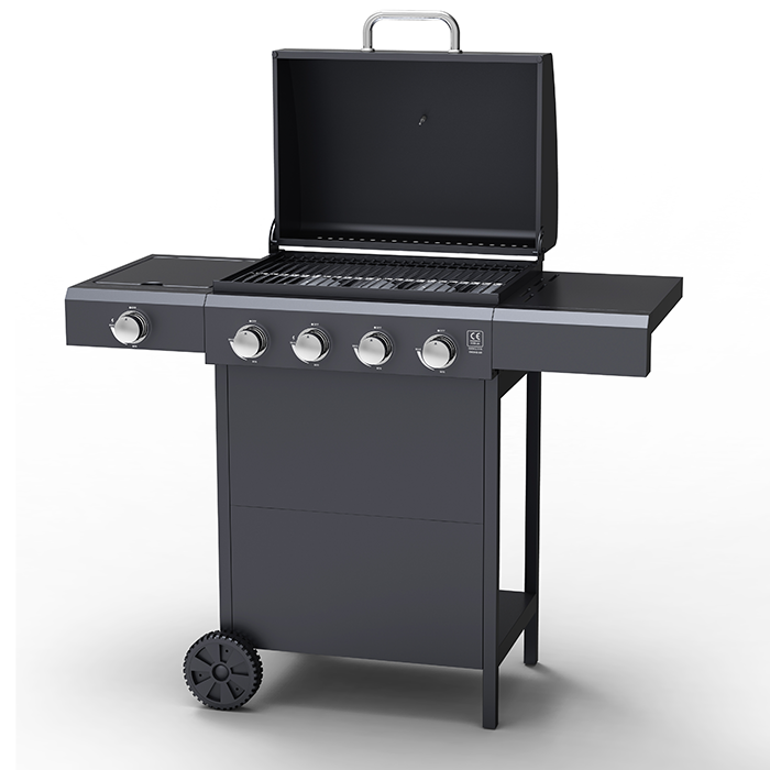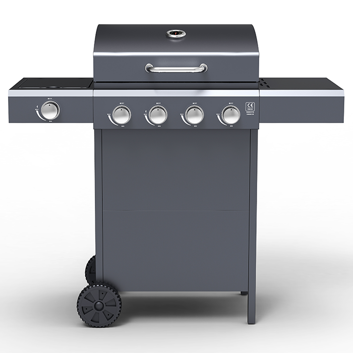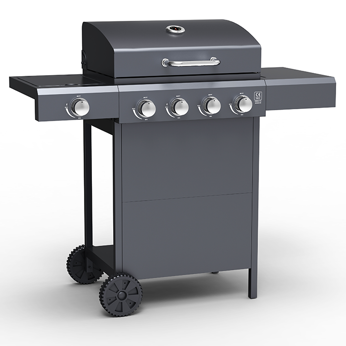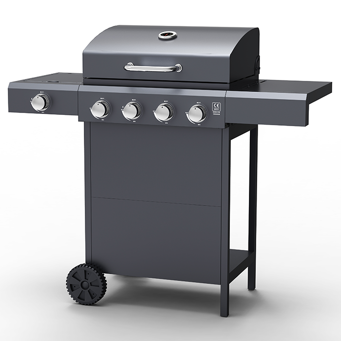 Embermann Grill Master 4 Burner Barbecue with Side Burner Free Heavy-Duty Cover & Deluxe BBQ Tool Set