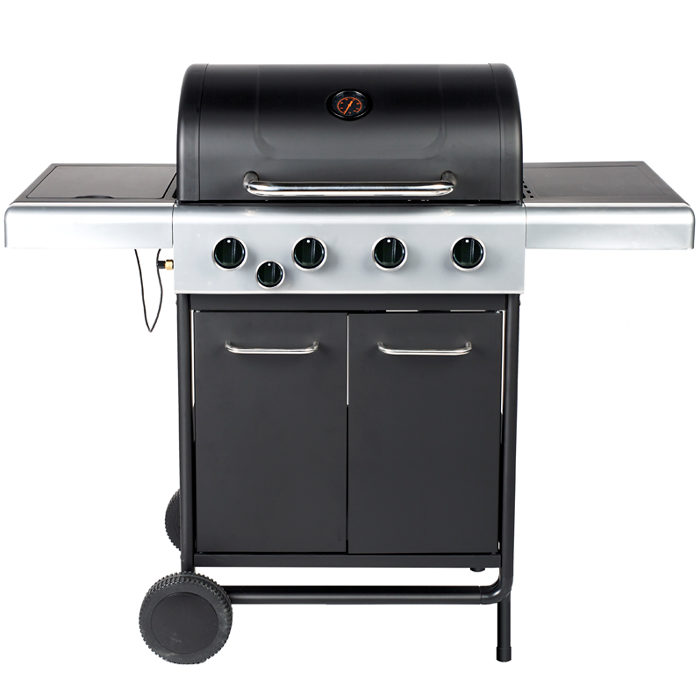 Embermann Grill Master 4 Burner Barbecue with Side Burner Free Heavy-Duty Cover & Deluxe BBQ Tool Set