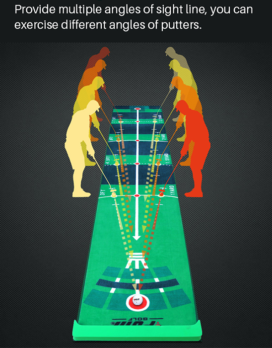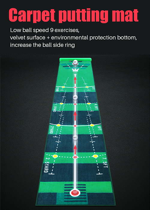 The soft velvet carpet surface replicates the characteristics of a premium golf course green and gives realistic green performance. The distance lines and target hole both help you fine tune both your putting aim and distance control. The TPE backing ensures the mat does not move in use and the 3cmm ball stopper plate catches off-target and overhit putts and can be used and each end of the mat.