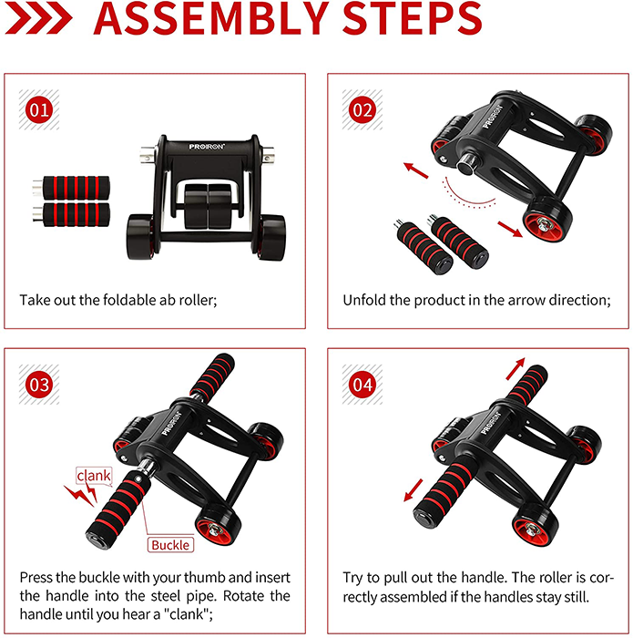 Due to the clever collapsible design of the PROIRON Ab Roller Wheel you can use it anywhere, the 4 wheels and top-quality bearings in a triangular layout offer a quiet and stable roll. The foam handles provide a comfortable grip so you can concentrate on good form.