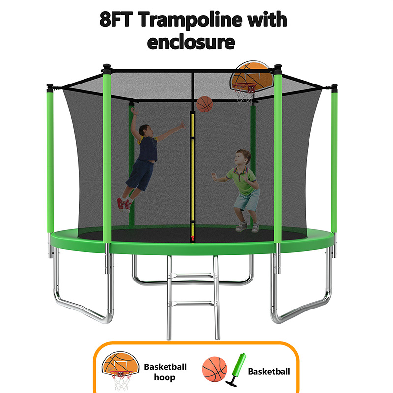 Velocity 8ft Trampoline with Safety Enclosure Basketball Hoop and Ladder